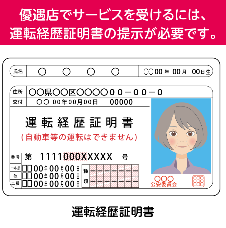 免許を返納すると受け取れる「運転経歴証明書」を提示すると、徳島県内の優遇店で割引などのサービスを受けることが可能です。また、この「運転経歴証明書」は、免許証に代わる公的な身分証明書にもなります。サポートしている優遇店を
